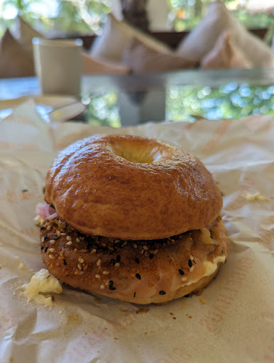 Read moreWe ordered a few things for breakfast here: salmon bagel, truffle scramble, blueberry bagel, hot chocolate and iced latte. We really enjoyed our food except the blueberry bagel. It wasn’t sweet at all and had had just plain cream cheese, not like in the menu. We asked the waiter to change it and they mixed in some blueberries in it. Overall it’s a nice place, I just think that the staff has to be trained better as they are very unconfident when taking the order and doing a lot of unnecessary things (like running to the kitchen and back to check what milk they have or take a notepad to write in two coffees in it instead of...