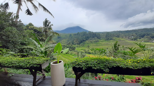 Batukaru Kopi offers an extraordinary view that adds to the charm of the visit. While the coffee and food are fairly standard, they are acceptable given the remote location of the café, where finding food and beverage suppliers could be challenging. The design of the spot is particularly appealing, with wooden chairs, comfortable backrests, and a captivating rug that enhances the eclectic atmosphere.