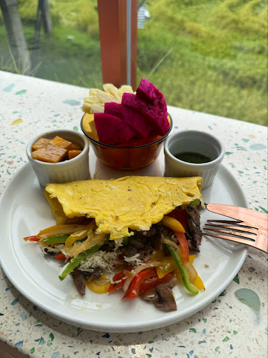 Read moreAmazing place, the atmosphere, air-con, relaxed music, some green view. Very polite en friendly waiter, great cook! Really tasteful late breakfast/lunch! Without bread, what I prefer, the extra pumpkin is filling this up. Definitely coming back!