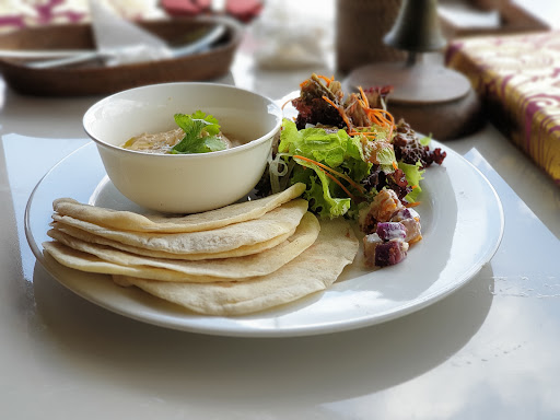 Read moreCafe Pomegranate it's a very nice place tucked in the rice fields, to arrive in the palace there is only a small path to follow, it's possible gi by motorbike but you have to go slow and be careful with the other scooter or pedestrian who will come from the opposite side, it's a gem in the area, very peaceful, you can have a drink and have food, the are it's perfect for a walking around, you can start from the Ubud Palace and arrive here avoiding the main road ( by walk ) . By motorbike you can access from the main road, but it's like a secret passage. The area it's surrounded by rice fields, yoga studio and other restaurants, one have their own hydroponic system and they have always fresh salads, you can stay and have a full relaxing time, read a book, watching sunset over the trees and the rice fields, watching the local kids...
