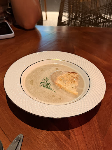 我們點了「松露蘑菇湯」與「冬陰海鮮湯」。 松露蘑菇湯濃郁得令人陶醉,帶有細緻的菇香與綿滑口感; 冬陰海鮮湯則湯色清透卻味道深邃, 酸辣平衡、鮮味十足, 讓人一口接一口停不下來。