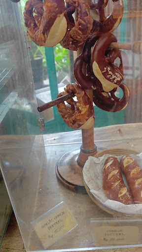 Read moreNice comfy Cafe, bakery, restaurant in Kerobokan. The place is nice and airy, modern with some sense of style. The open kitchen is a nice touch. The chairs are comfortable and the tables are generously spaced. It could be a place I could park myself at to do some work while enjoying some coffee and pastry. The coffee is good, but nothing special. I do really like the pretzels though, they have cheese and garlic versions, both are wonderful. Unfortunately the food did not match. I had the chicken schnitzel, it was OK but not great, a little dry. I woo give it another try but if the food was better this would've been my new hangout...