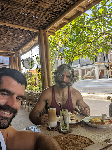 Food is average, something tasted better, something - worse. Seafood omelette sounds delicious in the menu, but it is bad. The omelette itself is fine, but very small, especially for the price of 85k + taxes. I guess, they need to write "an omelette with a half of a small tomato" instead of "tomatoes" in the menu. Shrimps were bitter, because they cleaned and cooked them improperly. The greens for the dish were so salty, it was as if a whole pound of salt had been added to a small pinch of greens. Pancakes are incredibly small, it's awkward. They also stick an asparagus stick into them (I don’t know why). It makes pancakes taste funny in the place where the asparagus was. Generally, the pancakes tasted okay, but the size and asparagus ruined it all.. Cappuccino is okay, the cream is very fat, but tastes nice. Americano is average, but strong. Vietnam drip is nice, but they forget to bring the condensed milk every time, you need to ask them to do it. The salads are ok, mango avocado salad is tasty. The salads cost 45k, but the additional taxes are high, and the serving portions are really small. If you have allergies, you can ask them to omit certain ingredients and they will respectfully do so. Thank you for that! The burger is ok, tastes normal, the size is smaller than in other places, but I would say it's average. The fries are sometimes okay, sometimes too fried. The Mango Lassie is truly delicious though! We were here for the third time, but the portions keep getting smaller and the food keeps getting worse, I guess we won't come back. Anyway, not the worse option to dine in in Ubud, I would suggest to order something average like the...