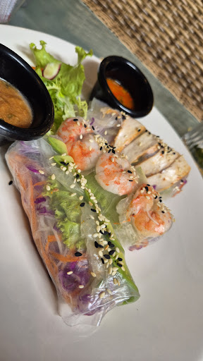 The food? Absolutely divine. The Classic Rice Paper Rolls were an explosion of freshness, perfectly complemented by the delicious dipping sauces. The Avocado Chicken Salad and Poached Chicken Salad were masterfully prepared – every ingredient was fresh, vibrant, and seasoned to perfection. The additional roasted chicken was tender, juicy, and full of flavor, elevating the entire dining experience.