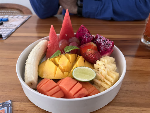 Food & Drinks • Smoothie Bowl – A vibrant and refreshing blend topped with fresh strawberries, bananas, chia seeds, granola, and coconut flakes. Every spoonful was a delightful mix of creamy and crunchy textures. • Avocado Toast – This dish was perfection on a plate! The creamy avocado spread, topped with microgreens and crumbled feta, was beautifully balanced. The addition of poached eggs and a zesty green sauce elevated the dish. • Salmon Tasmania – This was a standout! A deliciously fresh slice of sourdough topped with smoked salmon, capers, and dill, with a side of lemon to enhance the flavors. Every bite was light yet satisfying. • Eggs Benedict – Perfectly poached eggs over sautéed greens, mushrooms, and ham, smothered in velvety hollandaise sauce. The side salad added a refreshing touch. • Fresh Fruit Platter – A tropical medley of mango, dragon fruit, watermelon, grapes, and banana, beautifully arranged and bursting with natural sweetness. • Coffee & Hot Chocolates – The hot chocolates were rich and creamy, with gorgeous latte art, while the iced coffee was smooth and well-balanced.