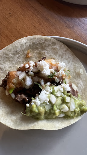 Carne asada taco: Completely one dimensional, and i struggled to pick up a hint of significant flavor (no garlic, no cilantro). It tasted slightly spicy, and a little salty, was drowning in avocado mush, and then it just ended there.