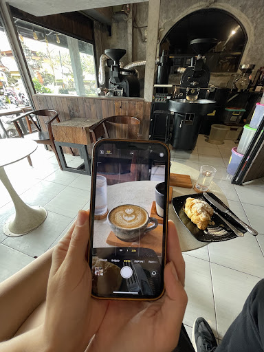 I adore this place without a shred of doubt. The beans they offer here in Bali are of the utmost quality, unrivalled by any other. However, my recent experience took a slightly different turn. Upon entering the shop, I noticed a man sitting with a cigarette in from of the coffee roasting machine. It was evident that he had indulged in numerous smokes in that very spot. Despite this, I proceeded to place my usual order and settled down next to him while I awaited its arrival.