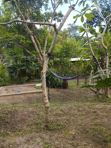 There is a giant shala for events, swinging hammocks, and different garden chill-out areas for coworking and catch ups. There are vintage decorations and a homemade community vibe.
