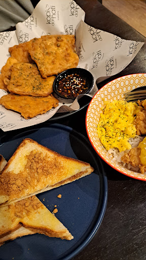 Tempatnya kecil tapi cukup nyaman. Ada banyak buku, komik, dan board game sambil menunggu pesanan. Toilet juga bersih. Sayang waktu itu datang baristanya lagi sakit dan nggak ada yang back up, jadi menu kopi lagi nggak available. Order rice bowl telur asin, tempe mendoan, sama lotus biscoff toast. Overall rasanya enak walau makanannya datang lumayan lama. 30 menit lebih ada deh. Untuk rice bowl ayamnya empuk, tepung pelapisnya enak crunchy gitu dan si salted eggnya nggak lebay. Tapi aku personally suka yang salted egg powdernya lebih kering. Nasinya juga pulen. Biasanya kalau mendoan disajikannya sama sambal kecap. Kalau ini disajikan sama chili oil plus kecap. Enak juga ternyata. Tapi mendoannya sendiri bukan yang mendoan asli Banyumas yang warna tepungnya masih kuning muda, tipis jiggle jiggle. Kalau di sini sedikit tebal dan hampir udah jadi tempe goreng. Tapi aku tetep suka, cuma menurutku terlalu oily terlebih cocolannya udah pakai chili oil. Toastnya enak banget sih asli aku sukaaa, garing tipis lembut...