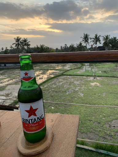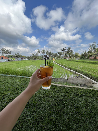 Try having dinner here as it's close to where we're staying. In terms of space, it's cozy enough to hang out for a long time or while working. The outdoor area is nice because you can see the rice fields and enjoy the breeze. They also have a nice rooftop area to enjoy the sunset.