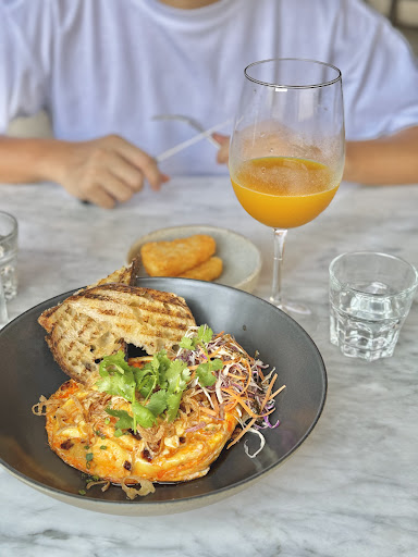 Came here on a friend’s recommendation for brunch and the food certainly did not disappoint!! 2 of us ordered these 2 mains + a banana banoffee waffle and were super full by the end of it. We were very happy with our selections by the way, with one super savory main (the chili crab scrambled egg) and something healthy to help balance it out (the tuna soba salad). The former - loved how fluffy the scrambled egg was with a distinct seafood-y taste of crab but curiously no matter how much we dug around, we simply could find any pieces of crab. But oh well, together with the toasty sourdough and delectable chili oil, it certainly hit the right spot! The latter - the whole soba salad felt super clean with its sweet and zesty dressing! We especially loved the soft melt in your mouth tofu cubes. Seared tuna was a nice touch and added some much needed protein. The banoffee waffles!! Were a superb end to the meal!! I loved how they painstakingly and artistically dripped different sauces (caramel, dark chocolate whipped cream) into each uhm dimple. The Creme brûlée banana slices were delish, pity there were only those few slices!! And the vanilla ice cream was 10/10, did not taste artificial at all!!