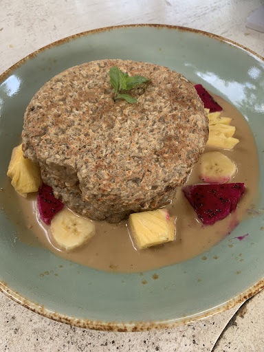 Read moreWe were seated at a pretty uncomfortable table that was in the garden. I had to use double cushions to be able to get my body in the right position to eat. The cushions were also stained. Thats just not right. It made me feel a bit dirty. There also was a hole in the table. The umbrellas were disgusting. They were soiled and they had holes in them. Totally unacceptable for outdoor dining. It looks like they just didn’t wanna make any investment anymore in their establishment. I had the lunch special for a 98 rupiah it was just OK and I wouldn’t recommend it, the gazpacho was not fresh. The mushrooms were delicious. The salad was so small that I don’t understand why they even bother giving it to me. The chicken curry were parts of the chickens bodied drained in a curry sauce. It was really hard to eat it quite messy however, the curry sauce tasted very nice, I didn’t really care for the rice didn’t have much flavor and it was in the middle of the plate which was difficult to get around to eat. The waitress never came back after she serve me my lunch I had to go find her my friend ordered the banana pancakes, it was flavorless. It was mostly oatmeal with no flavor of the banana. I had the coconut cheesecake, which was delicious. Probably the best thin. there was a car park and an attendant to help you. It was very hot I sweated through the whole lunch. I have to say the bathrooms were probably the best ones in Bali because they were quite large and easy to access. I’m not going to return because I didn’t feel I really got any value for my money just because the place is hipster doesn’t guarantee that it’s...