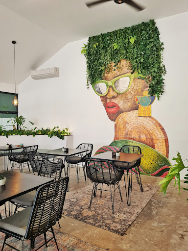 Decoration - Music: nice atmosphere, cool wall painting, plants all over the place and the music is great, reallly great, check it out.