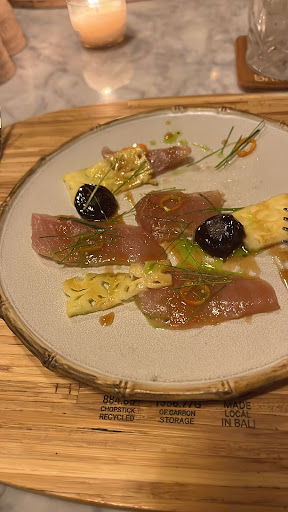 Each dish was a symphony of flavors, masterfully combining local Balinese influences with refined international techniques. The freshness of the tuna in the Rujak, the depth of the Klimoto risotto, the tenderness of the Wagyu, and the heavenly desserts were all unforgettable highlights.
