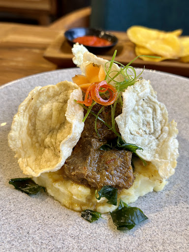 Ā Ā Ā Read moreThe food is not up to scratch. Nasi goreng kampung tastes bland, rice misses the seared taste (wok hei), satay is hard. Beef rendang is served on a bed of mashed potatoes that tastes bland, and is a weird combo anyway. All the crackers are not crispy (chao hong). Given the pricing and setup, expected much better food. In short, I'm also puzzled by the rave reviews here. Definitely not the best food around and the lack of customers on a Saturday evening is a give away. But top marks for the good service. Perhaps the owner, who I met briefly, can consider doing a proper QC...