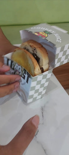 Read moreMonkey Jus and Toast jadi salah satu tempat kecil yang nyaman buat santai sebentar. Aku pesan jus dan roti bakar rasa coklat keju di sini, dan jujur, dua-duanya enak banget. Jusnya segar, manisnya pas dan nggak lebay, jadi tetap terasa ringan waktu diminum. Roti coklat kejunya juga enak — walaupun kombinasi coklat dan keju sama-sama manis, tapi rasanya tetap balance dan nggak bikin eneg. Ada sedikit rasa gurih dari rotinya yang bikin makin nagih.