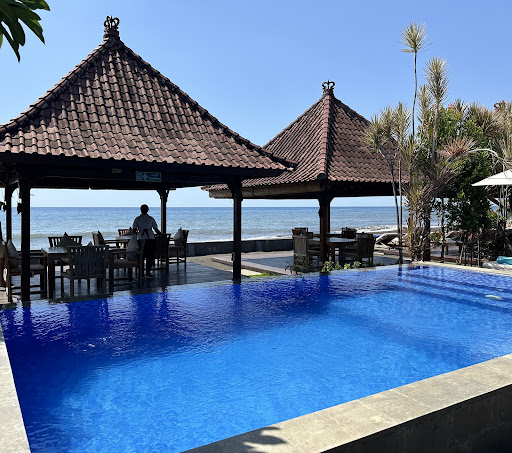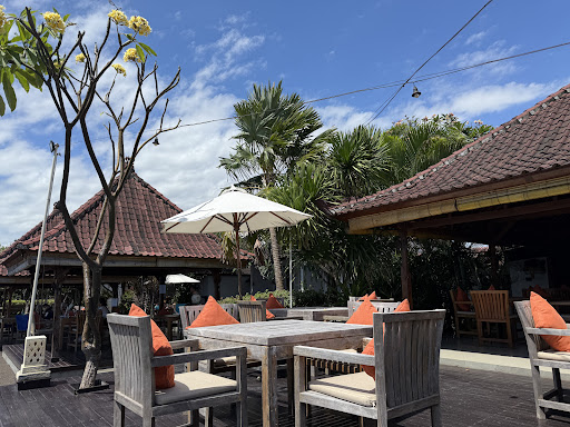 Read moreGreat location at the beach. We had a beach side table with a full view of the sea and the sound of the waves as a background noise. They offer a pick up and dropp off service for guests of all the villas in the area, really nice service! Free of charge. There was a wide choice of foods varying from Indonesian dishes to burgers and pasta and pizza. We went for the Indonesian dishes. The 2 sate starters were great. The beef rendang was perfect on flavour and the meat was really nice although it was not typical rendang meat. Rendang meat needs to melt on your tongue. They also had a special tuna sambal dish which was excellent. Do indicate if you can not handle spicy. Their beef burger was perfect. Portions are good size. As desserts we tried the spring rolls, the lava cake and banana fritters. We loved all 3 of them. Each dessert is accompanied by a scoop of ice cream which tasted really well. The service is excellent, really nice waiter and nice staff. I highly recommend this restaurant, you will not be...