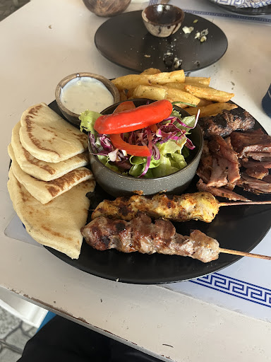 Gyro thought a little small was packed with meat, salad and sauce. Options to choose your own different sauces would have been nice. Egg plant portion was very generous maybe a little too much coriander but not the end of the world. The mixed grill was a delight, all meats superbly done, pork my favourite of them all, great portions and the fries, I am a huge fry enthusiast and this were superb, I would have liked a few more but I always do. They were great. Pitta bread different than I am used to but tasty nonetheless. Olive bread at the start is a nice touch too.