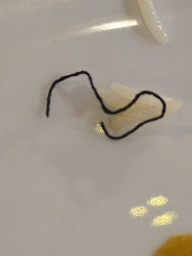 There was a black piece of thread that came in my rice. I didn’t mention it to the waitress at the time, because, hey, it happens, but because of what happened next, felt I should add that here. (Picture below)