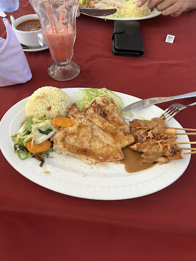 It would have been fine if the quality reflected this price but this was however not the case. I was picking out the bones in the chicken from the chicken soup. The chicken on the main dish was completely tasteless and hard to cut through same goes for the sate but the sauce hid this fact. The fish was over baked, salty and tasteless. Calamari and prawns remained untouched.