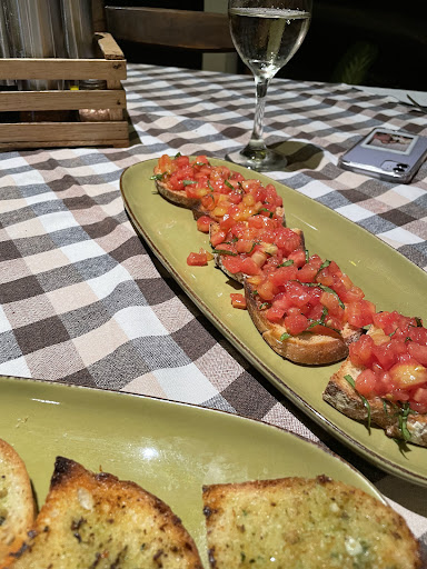 With my partner we shared a very generous portion of very nicely made bruschetta. Also tried the gnocchi Gorgonzola, which was great too. The local wine they serve is lovely and the drinks in general very reasonable.