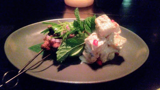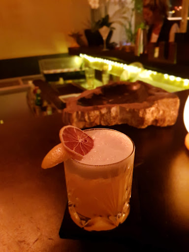 We had little trouble finding the place due to slightly incorrect location on maps and dark entrance but once you enter the gate, you are immediatly wowed by the courtyard and the ambience. We arrived early so waited on the bar, had a Basil Gin Sour and Smoked Whiskey Sour. Gin sour was really nice with broad flavors and celebrating basil. I love whiskey sour and this was a good, perfectly sour, but wasn't smoky for me. Probably would have been more smoky buy using heavily peated whiskey.