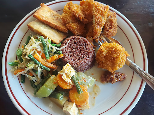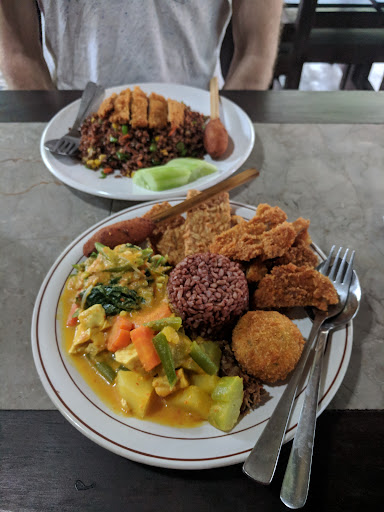 Read moreThis was the best vegan meal we have had so far. I was worried that we might not be able to find vegan traditional Balinese/Indonesian food. But we found it here, and at an incredible price. We had a Nasi Campur (30k), Nasi Goreng (25k) & Pineapple juice (20k). Portion size was big and we struggled to finish. They use plastic straws, but the waitress understood me easily when I requested no straw and was happy to comply. The food does take a while to prepare, as it's a small family restaurant. The dining experience is very slow paced, so if you are in a rush it might be better to look elsewhere. I really enjoyed relaxing here and didn't mind waiting for the food. It's an outdoor dining area, so it can get warm and you might want to cover up or bring bug spray. They don't provide free water, so bring some along or you can purchase small bottles for 5k. For me it's the most traditional dining experience I've had as a vegan in Bali. And is equally as good if not better, than my previous experiences in Bali before...