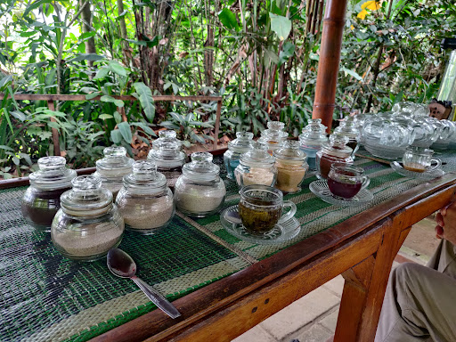 The bag of “tea” looked suspicious… no tea leaves, just a golden granular look. If it was dried, powdered ginger root, you would smell it. We opened the bag, and sure thing — it was a bag of sugar for 140 000 rupiah. Kindly ask your tour driver to skip...