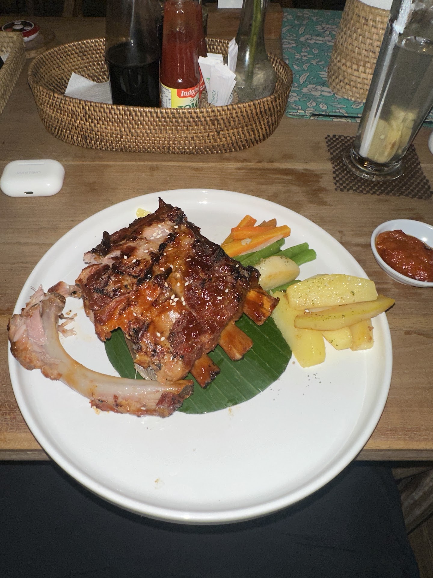 We had a bit of a hike to get here for dinner but made the effort based on the reviews. It received a 'People's Choice Award' last year, and people have raved about it. But really, it was pretty average, and I would not make the effort to return. I had the Coconut and Prawn Soup, which is quite tasty but prawns way over cooked and really pretty average overall. I had the Chicken Satay, which was beautifully presented. The sauce was nice, but again, it was pretty average. My husband also had the pork ribs, again quite nice, but something I am not thinking about the next day. The service was good, but on par with what I have already received and expect in Bali. There was live traditional music, but this is what pushed us into leaving sooner than we may have as it was too loud, too dominating and honestly repetitious and boring. To top it off, 4 dogs decided to bark, fight, and mate in front of the restaurant (not the restaurants fault, obviously) for most of the time we were there. So, for me, what gives a 4 or 5 star rating is when I ask myself, 'Would I go back'? And the answer is, No ! So, no 4 or 5 star...