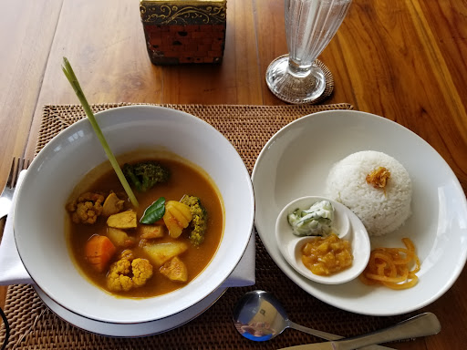 Read moreThe setting is beautiful, amung the rice paddies. You can sit out in little huts with traditional seating or inside. The view of the rice paddies is good from the upstairs. The service is excellent. They are very attentive and helpful. It wasn't busy while I was there but they were at my table smiling every time I needed something. The menu has various types of food. A relatively small number of Asian/Indonesian dishes but also pasta and pizza dishes. They have many choices of beverages including "cleansing juices." The prices were quite expensive but food decent. I wouldn't say best food in Bali but fine for a...