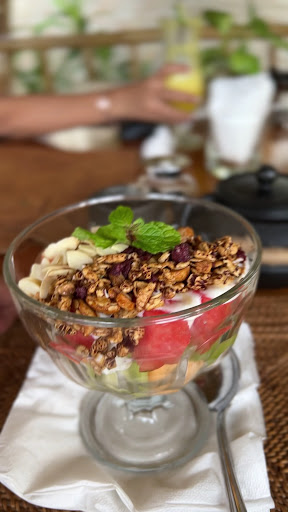 I ordered Baked Eggs and my fried had Nasi Goreng. They were delicious! The coffee and pineapple juice were really fresh as well. I tried the Morning Granola, served with various local fruit and it ended our meals really well.