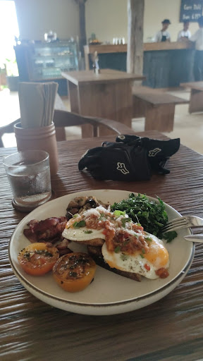 Read moreMy partner and I visited for lunch today. This new spot is incredible! The design of the space is beautiful, with a wonderful mix of reclaimed wood, raw brick and concrete as well as being open on two sides, allowing fantastic views and for the sea breeze to pass through. The staff were very friendly and attentive - even getting smiles from the kitchen! My partner ordered a gado gado, substituting the egg for extra tempeh to vegan-ise it, and said it was one of her favourite gado gados in the three months we've lived here. I ordered the vegan burger, which tasted fresh and delicious, though did seem that it was missing a couple of ingredients stated on the menu... however, it's not unusual for restaurants in Bali to just omit them if they don't have them in stock. The burger came with a handful of potato wedges, which were great, though did need to ask for a sauce to dip (the aioli, as listed in the burger, would be a great addition) . We also shared the green Popeye juice, which was full of spirulina - healthy and tasty! Made, who owns the restaurant, made sure he checked in on us, and is an incredibly friendly guy. Given we're local, we'll be sure to return time and again, and may just be our new...