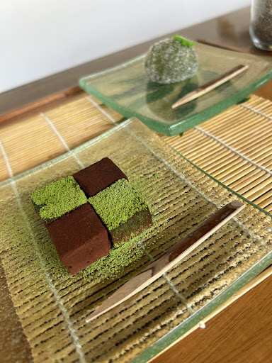 I tried the matcha chocolate (incredible!) and two types of mochi — one with cinnamon, the other with a beautifully roasted finish. Both were chewy, rich in flavor, and deeply comforting. The kitchen is open, so you can actually see the desserts being made — it adds a kind of intimacy and connection to the experience.