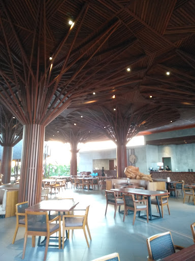 More people should know this place. The amazing architecture might make people think the food will be expensive. But it is not. It is even cheaper than most restaurants for tourist. Only spend IDR 570.000 for 6. The food ranges from balinese, indonesian, asian, and western food. They have bakery as well but not many was available when I visit. Everything was good, but could be better imho. The restaurant itself is on the third floor and it is semi open. Expect it to be windy :). There are plenty space between tables and it is very spacious. Will come again and hopefully will remember to take some photo...