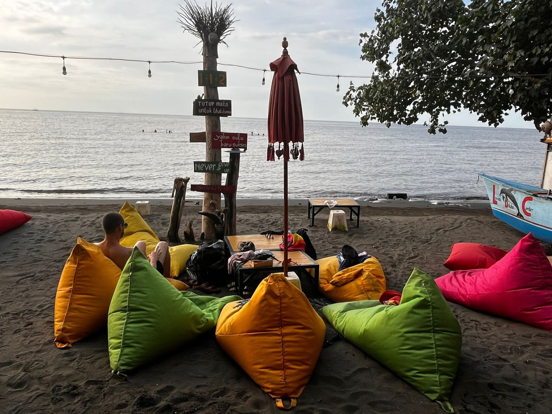 Read moreI found this little gem while walking along the beach..great laid back beach Warung vibe with bean bags to chill on while watching the sunset. The food is fresh and yummy and reasonably priced. We had the Barramundi, Tuna and calamari ..delicious. Also I had the club sandwich on a previous visit which was the best I've ever tasted. The owner and staff are super friendly and welcoming. Please take the time to visit when you're in Lovina, you won't be...
