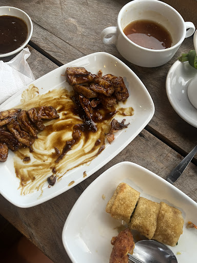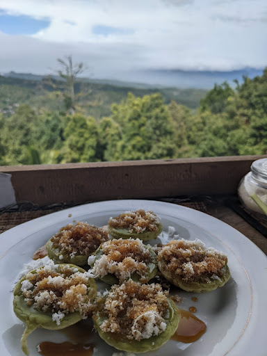 The meals we are here were genuinely the tastiest we've had in the three weeks we've been in Indonesia. The flavours were perfectly balanced and the portions generous and filling. My sister and I had the Pandan Ayam (chicken) and the chicken meatball soup, both of which were delicious. We shared a plate of Lak Lak for dessert. The hot drink Bajigur was a bit like chai but lighter. We enjoyed our meal so much we returned the following morning and split a plate of Pandan Ayam and a plate of Lak Lak for our morning meal. They were also very helpful giving certain answers when I asked for allergy information for the dishes. The view is lovely and in the evenings they switch on the fairy lights and the place becomes magical. I recommend...