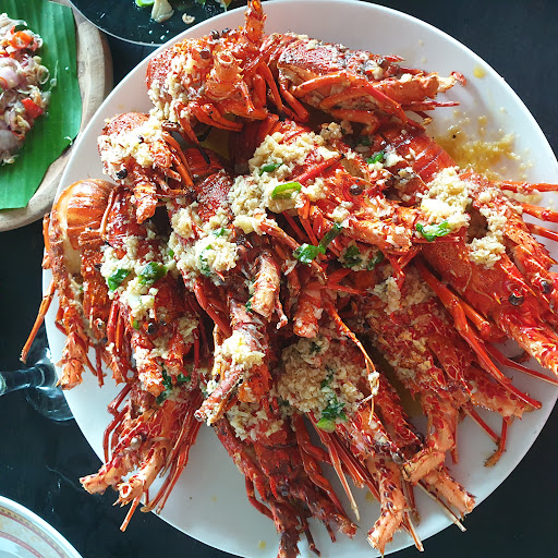 We pre-ordered 1.5kg of lobster and 1kg of whole fish for our Christmas lunch. The incredible food, with condiments and sides was served very quickly. So, let them know you're coming if you want lobster. The lobster is cooked in garlic butter, and it was glorious. Everything was so fresh and tasty. I won't be able to stop thinking about this meal for a long time. It was incredible and the position is right on the beach. I took a bottle of wine and they gave us glasses and ice. We also ordered Bintangs and other drinks, that they have. If you're in Medewi, or nearby, you must try this humble place. They have quite an extensive menu. See the photos taken...