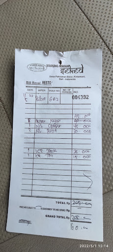 Oya waktu bayar harap teliti bonnya. Krn saya pesan 1 nasi nyat nyat di bon di tulis 2. Untungnya saya lihat saya minta koreksi. kl ga saya kena tipu 45k. Udah mahal...