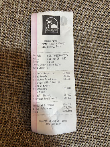 Read moreI'm making this review in the hopes that they fix the issue quickly. I have come to this warung for several years. I haven't been recently until today. I walked in, asked about the lounge chair which they told me twice that it costs 150k. I told them twice that it is fine. You only need to tell once. Not a big deal. They asked me which table, I let them know and they gave me a lounge chair with sand all over it. I cleaned it. 20 staff are in the back socializing, smoking, being very loud like they are hanging out at social gathering for themselves. Not one staff is on the beach paying attention to customers. After sitting in the chair for 10 minutes with my head turned back looking at the 20 staff, no one payed attention. I had to finally walk over to them and ask for service. I asked for Kombucha and a glass of ice. She did not bring the glass of ice - I had to ask again when she brought the drink. 10 minutes later I'm smoking - and the same exact situation happened - all of them in the back/side of the warung doing the same exact thing. I finally got my ashtray. As I write this, other customers have their heads turned continuously looking for service and now have to walk up to the counter to get anyone's attention. The staff and servers are now walking around the beach laughing and yelling to each other loudly like kids. I live in Bali many years, and I understand what staff is like here, but this is one of the worst I've seen - and literally 20+ of them here. They laugh and smilie at each other, not pay any attention to customers, and when you talk to them or look at them, their smile goes away. I love this warung -...