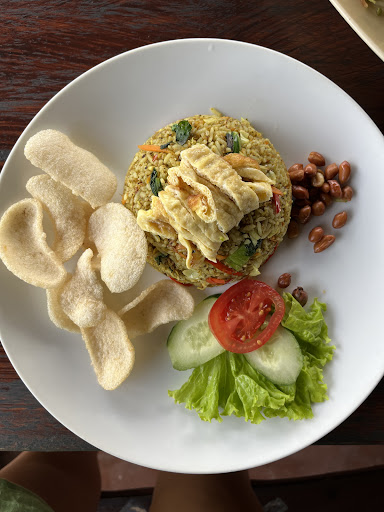 The setting of Warung Semana is rustic and intimate, blending seamlessly with the natural surroundings. The open-air seating overlooks lush greenery, creating a peaceful and calming atmosphere, ideal for relaxation. The warung’s simple, traditional decor adds to the charm, making you feel like you’re dining in a local’s home.
