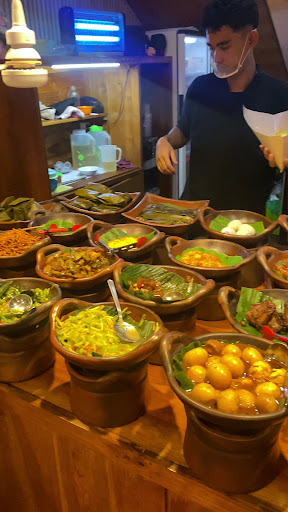 Pilihan nasi cukup beragam, mulai dari nasi putih, nasi liwet, hingga nasi merah. Untuk lauk pun sangat variatif—ada ayam goreng, ikan, daging, hingga aneka sayur khas Sunda. Semuanya terlihat segar dan menggugah selera. Setelah membayar, di sisi timur tersedia meja khusus sambal dan lalapan yang bisa diambil sepuasnya, nilai plus bagi pecinta sambal!