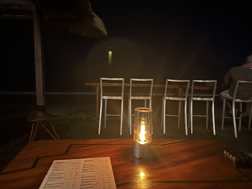 I sat in one of the suda seating areas: It's in prime real estate view of the early entertainment and the evening DJ, on a deck that highlighted the rolling waves in the water with lights. The setup was incredible, and you got up for nothing and I mean nothing - there were at least five people standing there, waiting to serve you. And the menu....the food was incredible and the cocktails didn't taste like they had any alcohol in them whatsoever (They totally did though, so pace yourself!) There was live guitar music, then the DJ brought some nice chill vibes. They cool part - they give you so much food for what you pay! I was stuffed and ended up bringing most of a dish back.