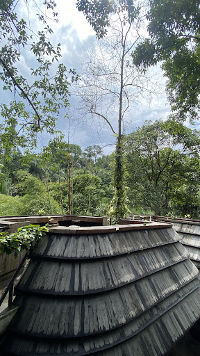 The architecture of this cafe is unique, unlike other cafes I've been to. It resembles a birds nest, and the cafe has 3 stories with an open concept that allows the wind to pass through. To get to this location is easy if you have a small car or come via motorbike as the roads are narrow and steep downwards and incline. Some cars that have many passengers in it may struggle to drive up as it is a long incline road when you leave the cafe towards central ubud direction. The cafe has a parking lot right across it for cars and motorbikes. Because the cafe is right next to the road, you're able to hear the vehicles driving by and honking, including trucks trying to drive up the hill north of the cafe. Additionally, there is a construction occurring a few meters away from the cafe that can be heard.