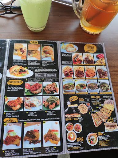 The food taste is average as a resto i think (were visit i chose spaghetti goreng, sop iga and banana nuget) many kind of heavy food like rice bowl, pasta, steak beef or chicken, ramen, fries and sweet snack like banana nuget, roasted toast. The beverage is have biger size than usual like tea lechea and some hot coffees also blend coffees.