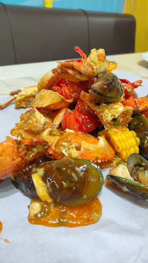 Read morePerdana cobain seafood yang disajikan dengan cara ditumpahkan langsung di atas meja (sebetulnya ada lapisan kertas dan plastik di bawahnya jadi gak langsung di atas permukaan meja). Cita rasanya sangat enak. Perpaduan bumbunya pas dan rasa saus padangnya khas. Untuk isian seafood ada kepiting, kerang, udang, dan beberapa bahan tambahan lainnya sebagai pelengkap. Disini tersedia berbagai menu hidangan laut. Untuk harganya sesuai dengan kualitas rasanya. Tempatnya bersih, nyaman, dan rapi....