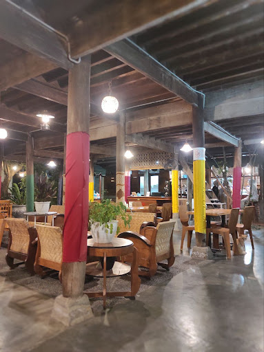 Read moreMeskipun letaknya masuk lorong dan tidak di pinggir jalan besar atau nasional yang membuat suasananya tenang. Tempatnya sangat nyaman. Suasananya sangat tenang. Pepohonan menambahkan kesejukan dan damai. Jauh dari suara bising. Seperti suasana rumah tapi cafe. Pelayanan nya bagus dan ramah. Makanan cukup banyak dan rasanya enak. Harganya juga terjangkau. Durasi pemesanan hingga makanan sampai tidak menunggu waktu y lama. Selain indor di dlm rumah panggung, terdapat outdoor di bawah rumah panggung yang tidak pengap meskipun ada pengunjung y merokok. Karena konsepnya seperti rumah adat aceh dan perkarangan yang luas membuat pengunjung serasa di kampung halaman yang sedang berkumpul bersama kerabat merayakan pesta. Hehehe.. Realitanya berada di cafe dan bersama pengunjung lainnya. Tidak perlu kawatir digigit nyamuk karena cafe memfasilitasi alat yang dapat membunuh nyamuk secara otomatis. Parkirannya juga luas yang dapat memarkirkan mobil dan motor di perkarangannya. Segala suasana dan makanannya membuat saya ingin kembali lagi lagi lagi dan...