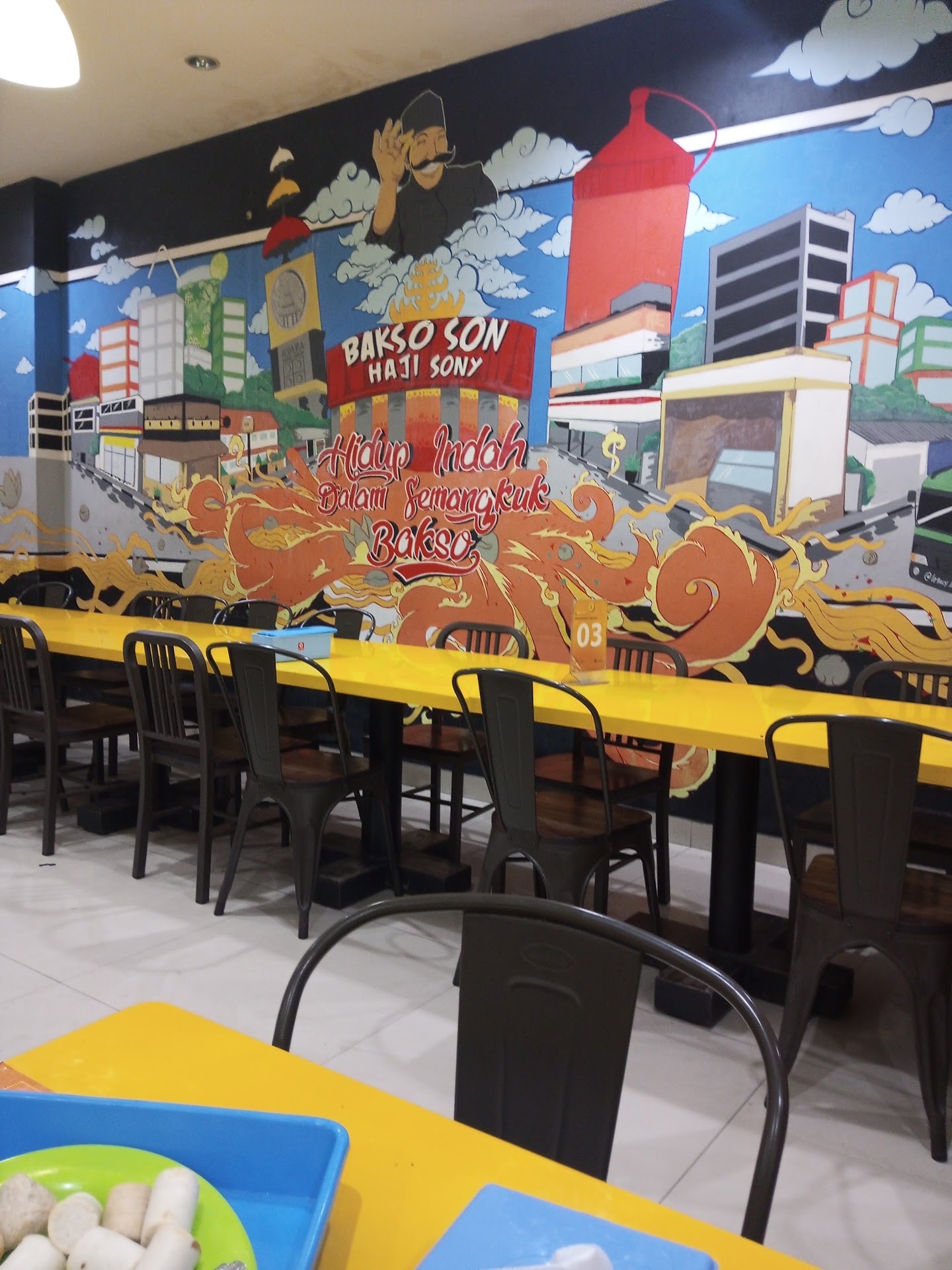 when i order sweet ice tea, the waiter said they dont served ice cubes, so i eventually i ordered mineral water with ice.( i suggest they would serve more cool drinks, such as /orange with ice/es jeruk, sweet ice tea/es teh manis, milkshake, and variety of fruits juices) the meatballs taste meaty, a bit hard to chew. the meatballs served as a clear soup with a coriander leaves. But for me, the taste is not a special thing for me. i would gv 7 of 10. there is no other menu, just chicken noodle (mi ayam and meatballs/bakso). in my opinion, the staff very helpfull, but the menu just so so.