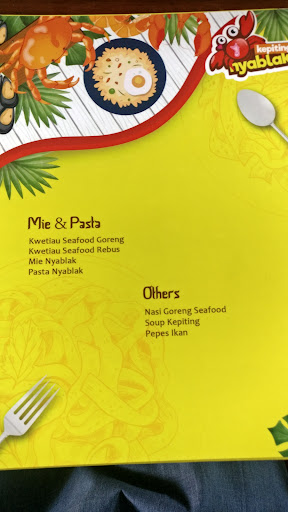 its kinda tricky to find the location, because its located inside a housing complex, the small and rocky road and a bit confuse, because i think i lost the way, and the road will be blocked or the end of the road, but then its better to stick to the map,.. the you will see the kepiting nyablak sign on the left. the resto is like a old house, with a vintage floor. the front desk just a simple area. chair and dinning table set all over the area, we can choose wether to eat using plate or without plate means the food is just served on the table without plate. i order the seafood package for 4 person, it consist of crab, shuttle fish, shell and corn chunk served with padang sauce, and we prefer the highest spicy level. when the dishes came, it really taste very hot sauce. i like the food here. we need to drink cool water to sooth it. they also sell hot and spicy snacks. nice grafity on the wall, showcase the seafood resto. decorated with bulb will make the romantic scenery and warm vibe for dinner.. nice decoration for young to hangout and spending time here. some people might think the menu is pricey, for young...