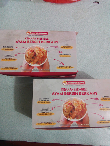 Read moreSaya sering beli ayam bersih berkah d berbagai outlet, antapani padasuka dan tubagus ismail. Untuk kebersihan tempat bersih dan sesuai untuk harga dan pesanan. Dan terakhir saya beli d outlet gerlong yg pertama saya beli geprek dengan harga yg sesuai di menu. Dan kedua kalinya saya beli lagi d gerlong, ayam geprek tpi anehnya sambelnya d hargain lagi . Padahal selama saya beli kalau ayam geprek itu dengan harga segitu sudah sama sambal. Tapi terakhir saya beli kmrin mba nya bilang kalau beli ayam geprek blm termasuk sambel dan sambelnya d hargain lagi. Trs tempatnya kurang bersih. Smoga untuk outlet gerlong bisa d tingkatin lagi dari harga dan tempat kebersihanya.