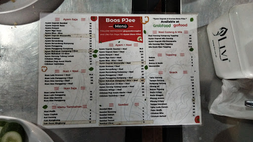Read moreKali ini tempat makan yang menyedikan menu andalannya berbahan dasar "Ayam" yang diolah menjadi berbagai macam varian, dengan pilihan sambal hingga 6 macam. Situasi yang menggambarkan di tempat makan ini, lebih identik dengan gaya arsitektur besi yang kokoh, dengan warna lebih dominan kuning, hitam dan sedikit merah. Sangat nyaman sekali berbincang dengan kerabat kerja, atau pun dengan pasangan sekalipun. Lokasi parkir yang luas, dengan tempat duduk yang disedikan hingga 40 meja lebih. Untuk menunya sendiri berbagai macam variannya, mulai dari di Geprek, Panggang, hingga Bakar. Jangan lupa, harus cobain Cah Kangkung nya ya! Minuman minumannya pun tidak kalah enaknya. Oh iya ketinggalan, disini juga ada kopi khasnya juga. Dan varian lainnya. Silahkan mampir...